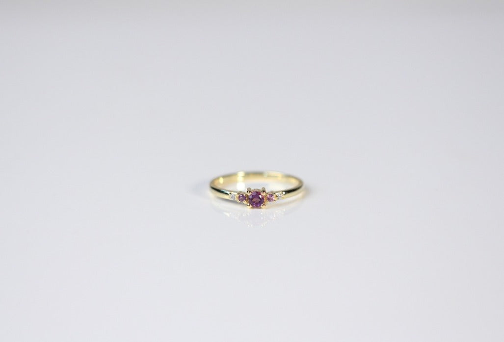 This ring has been made using natural Amethyst and White Topaz, put together in 14 karat solid gold.