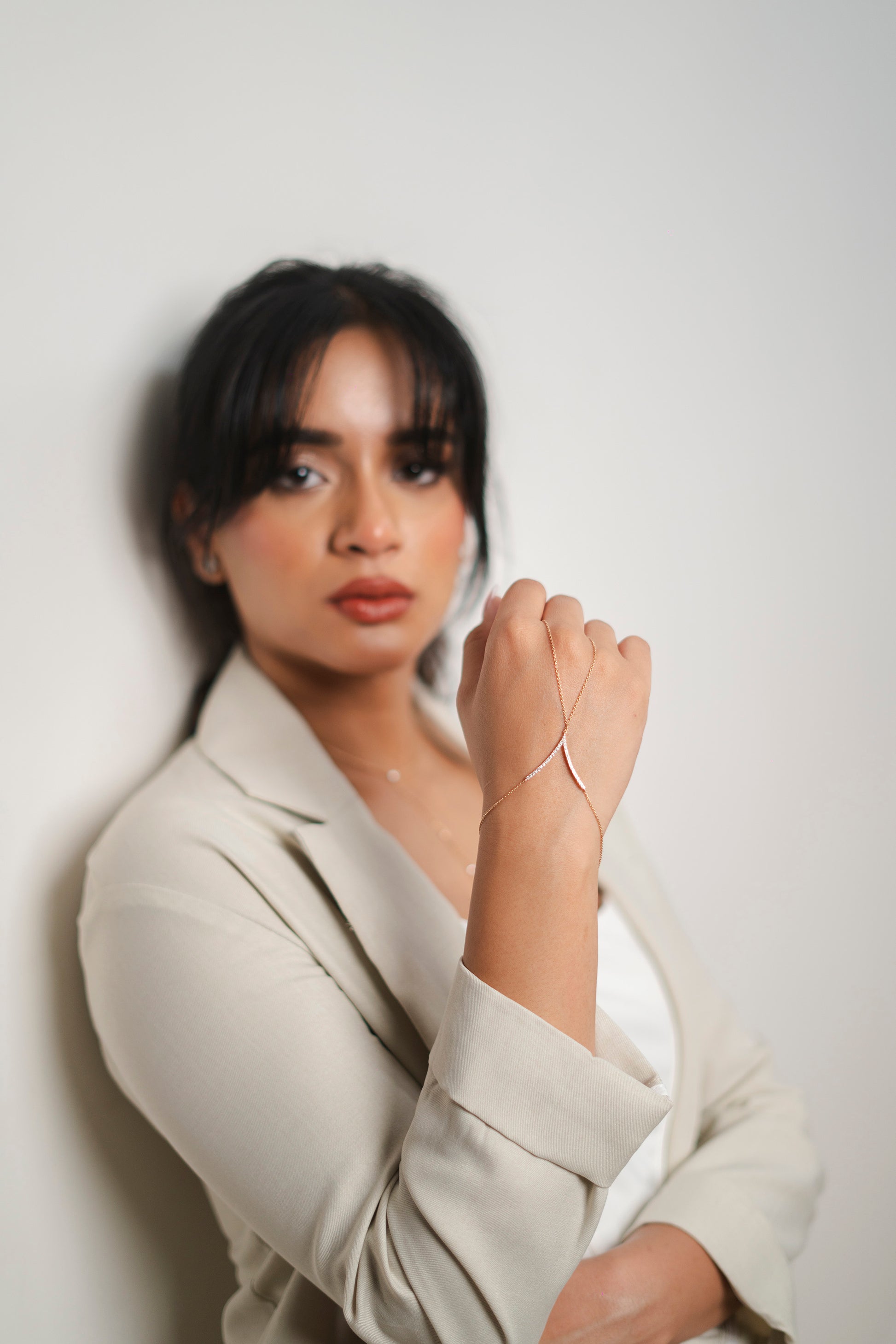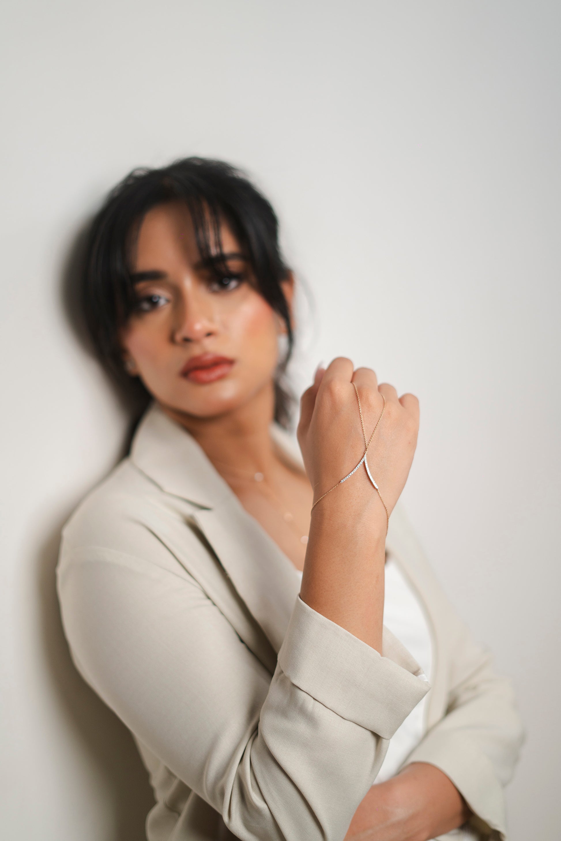 In literature and pop culture, women often come in threes, deriving power from solidarity even as they work to forge their own paths. The Trio hand chain is symbolic to the power of women. Made in solid gold with the best quality diamonds.