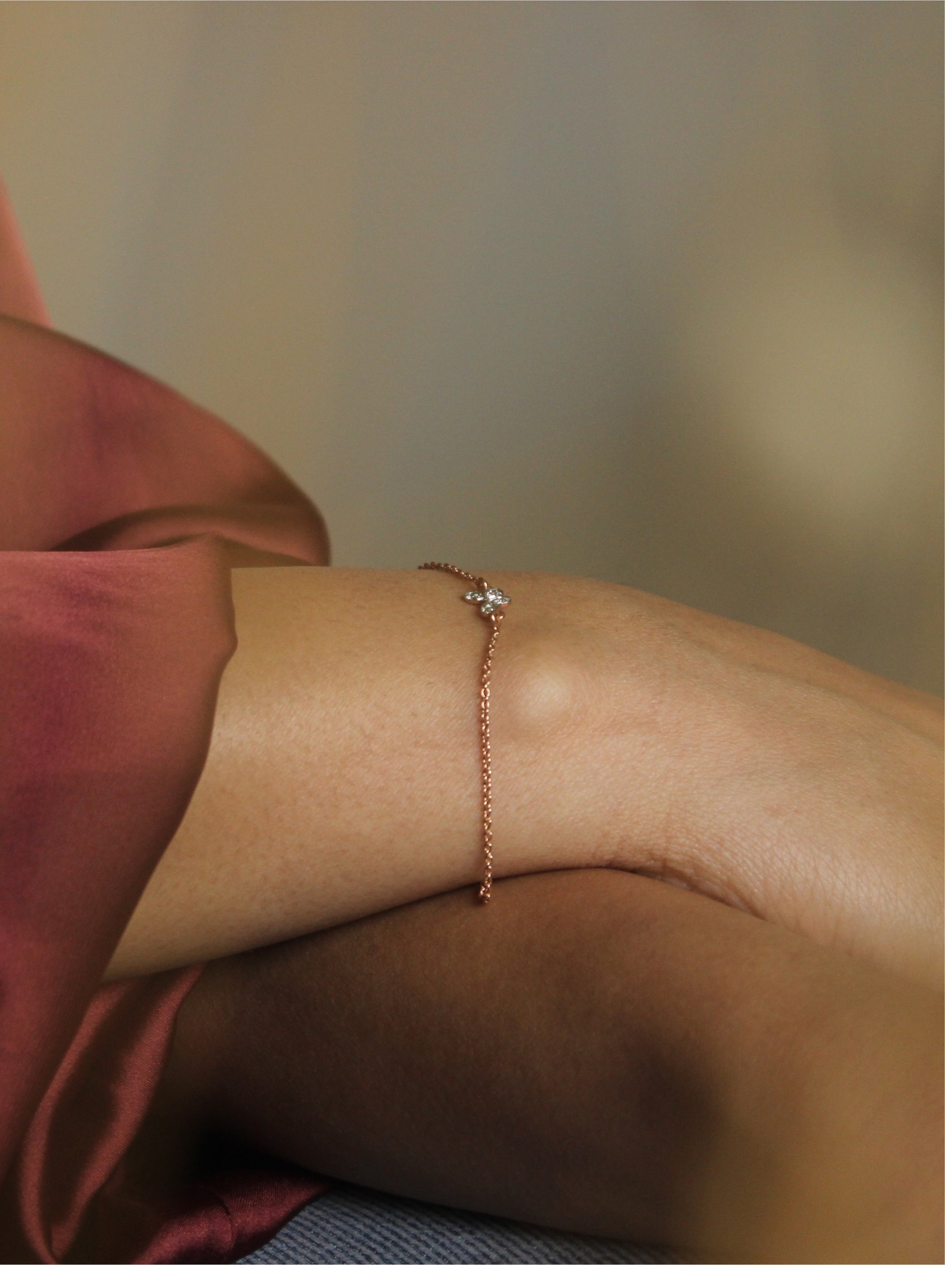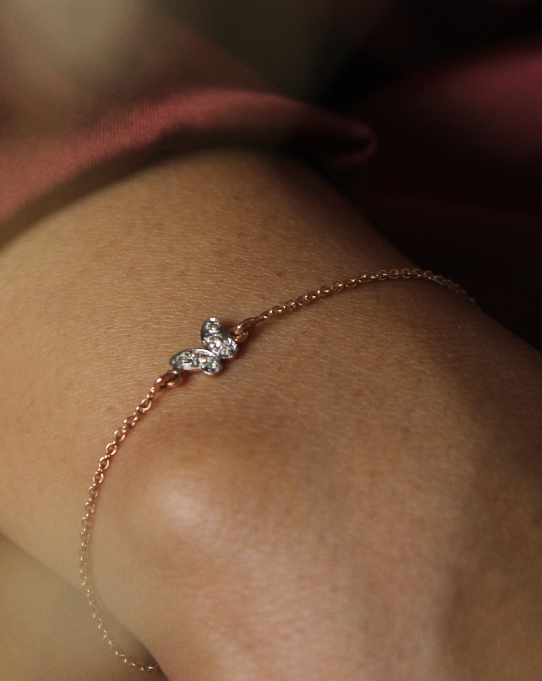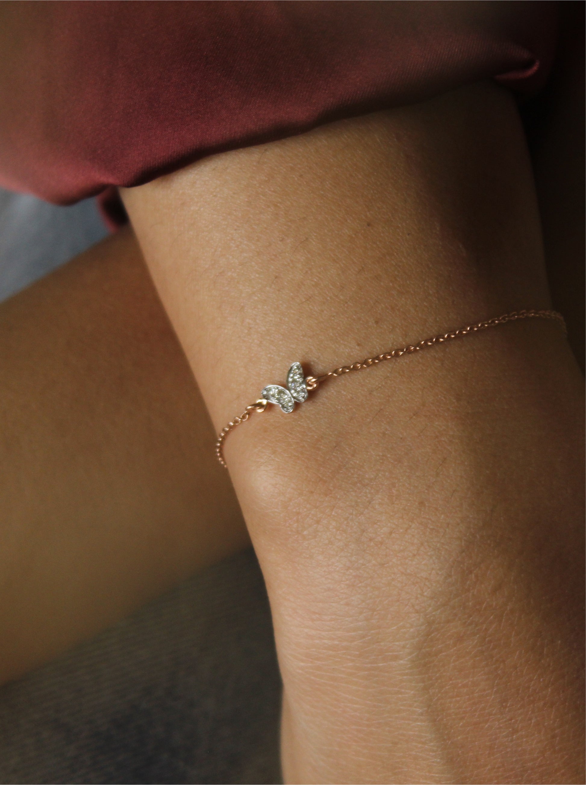 This butterfly bracelet is made in 14 karat gold and with natural white diamonds. You can wear this everyday by stacking it up with your watch. ✨