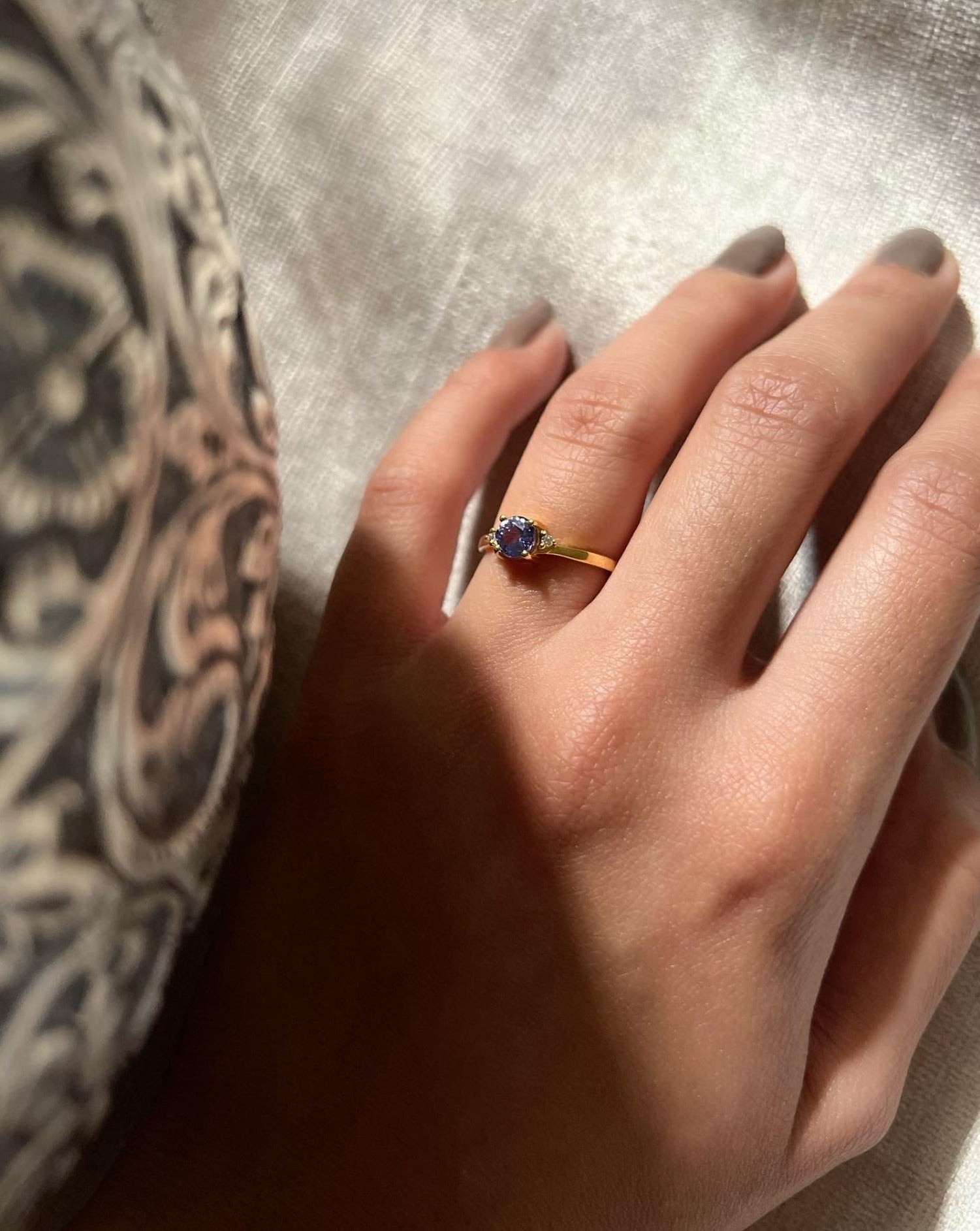 Borrowing diamonds from the sky, one ring at a time. Sitara ring with tanzanite and diamonds made in 14 karat gold and is BIS Hallmarked.