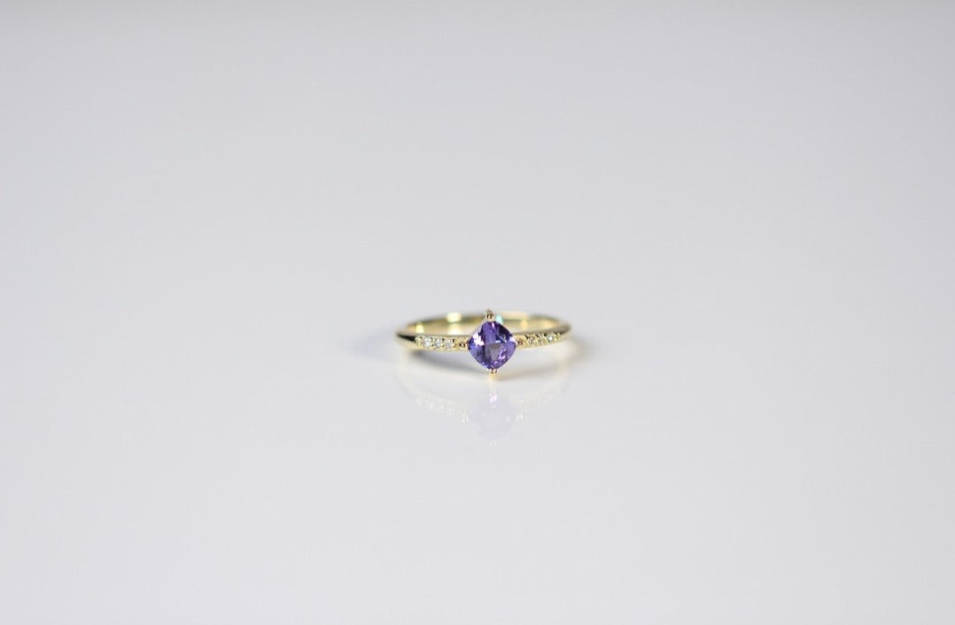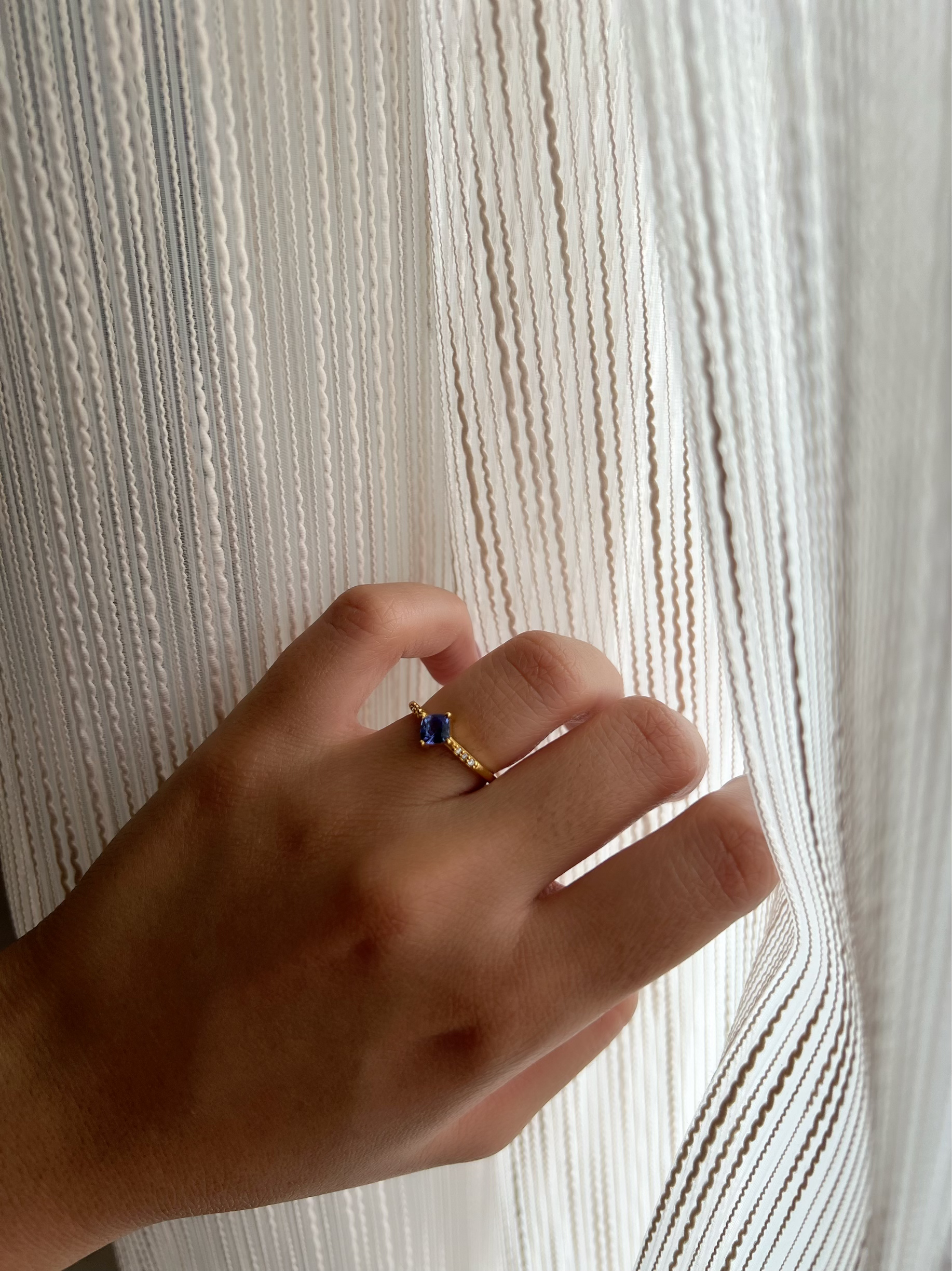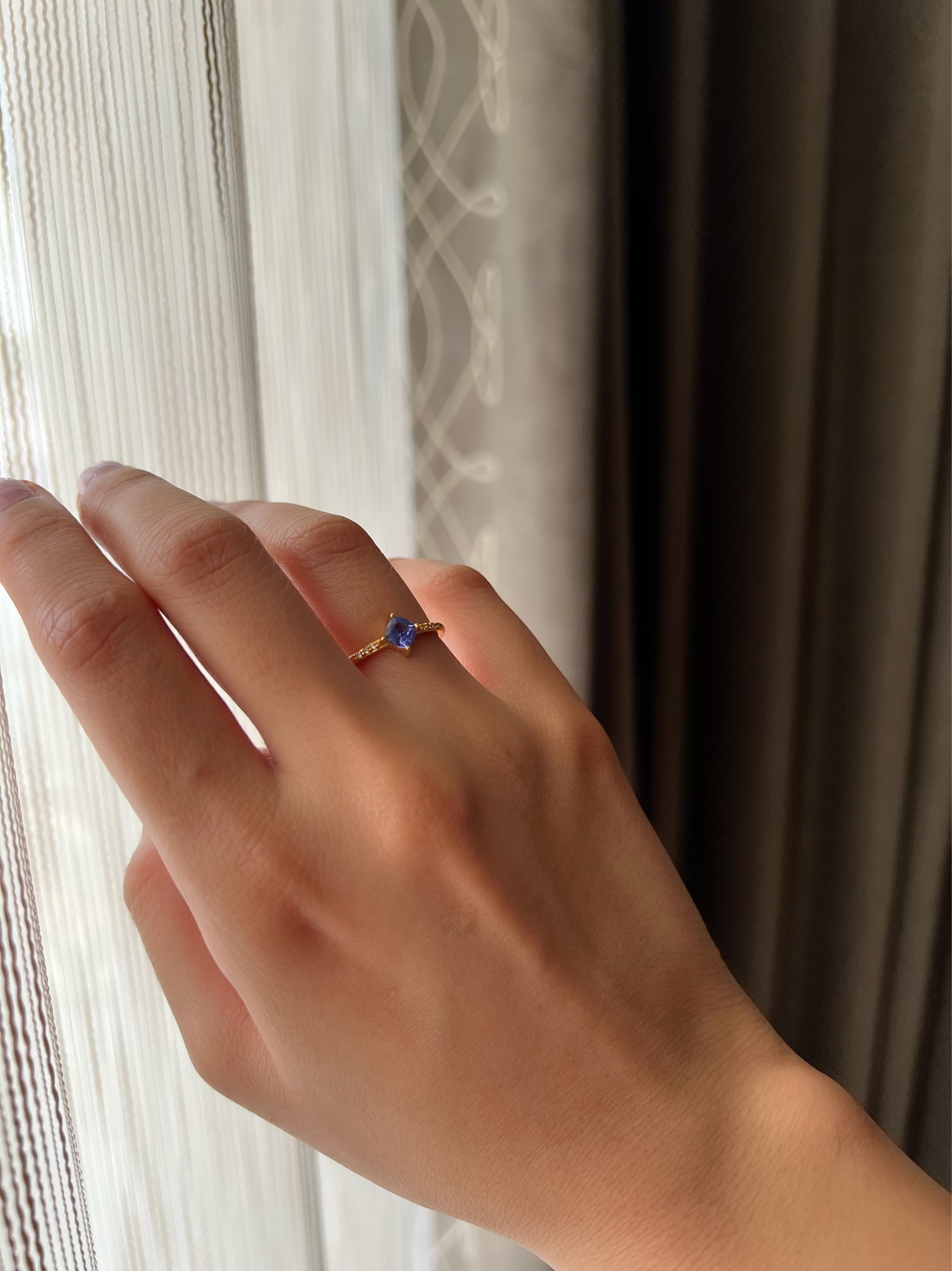A romantic medley of tanzanite and diamonds in our Inaayat ring, reminding us of a sky full of stars. Made by karigars in 14 karat gold, it has been hallmarked for it’s authenticity.