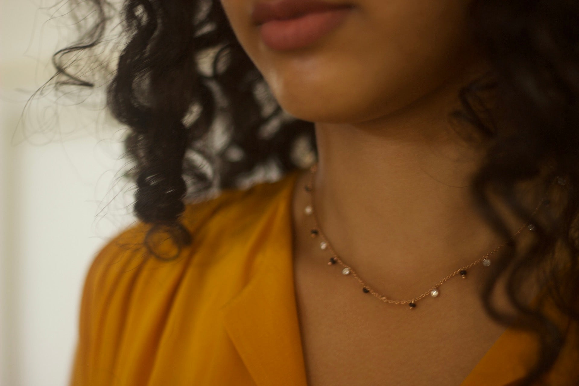 A modern take on the classic mangalsutra. We are big on traditions and the mangalsutra is one of them. Alternated with diamonds and black beads, this classic mangalsutra can be styled with western wear as well. Made in 14 karat solid gold and natural white diamonds (VVS GH).