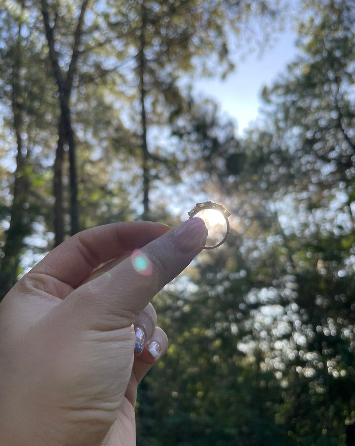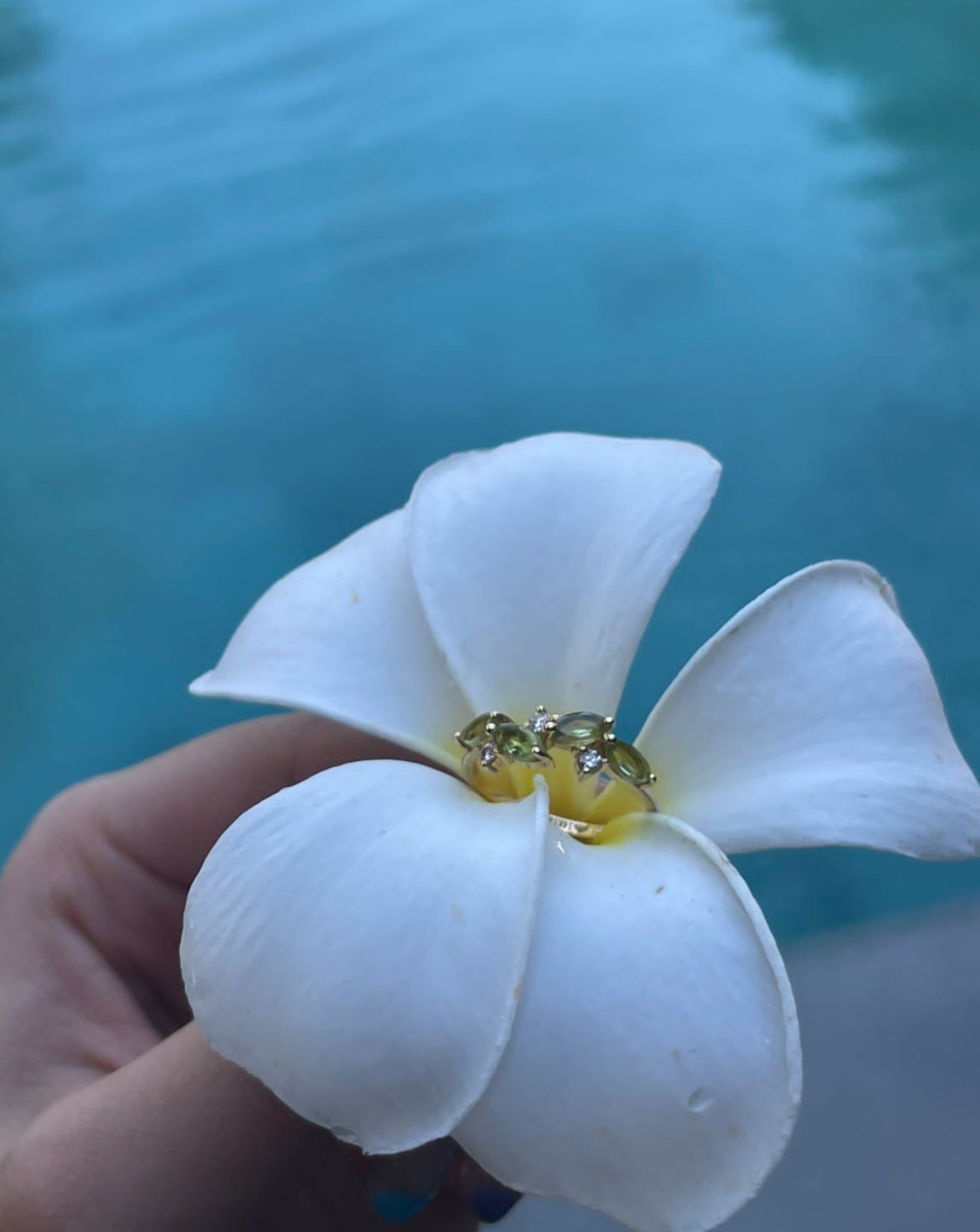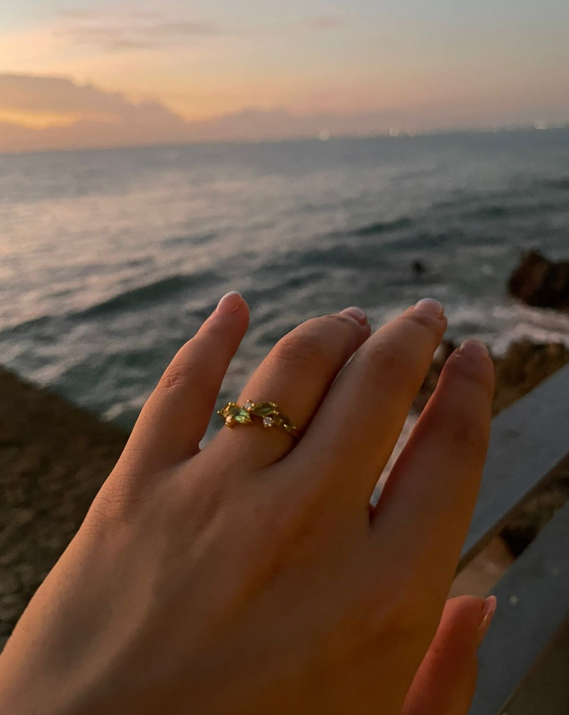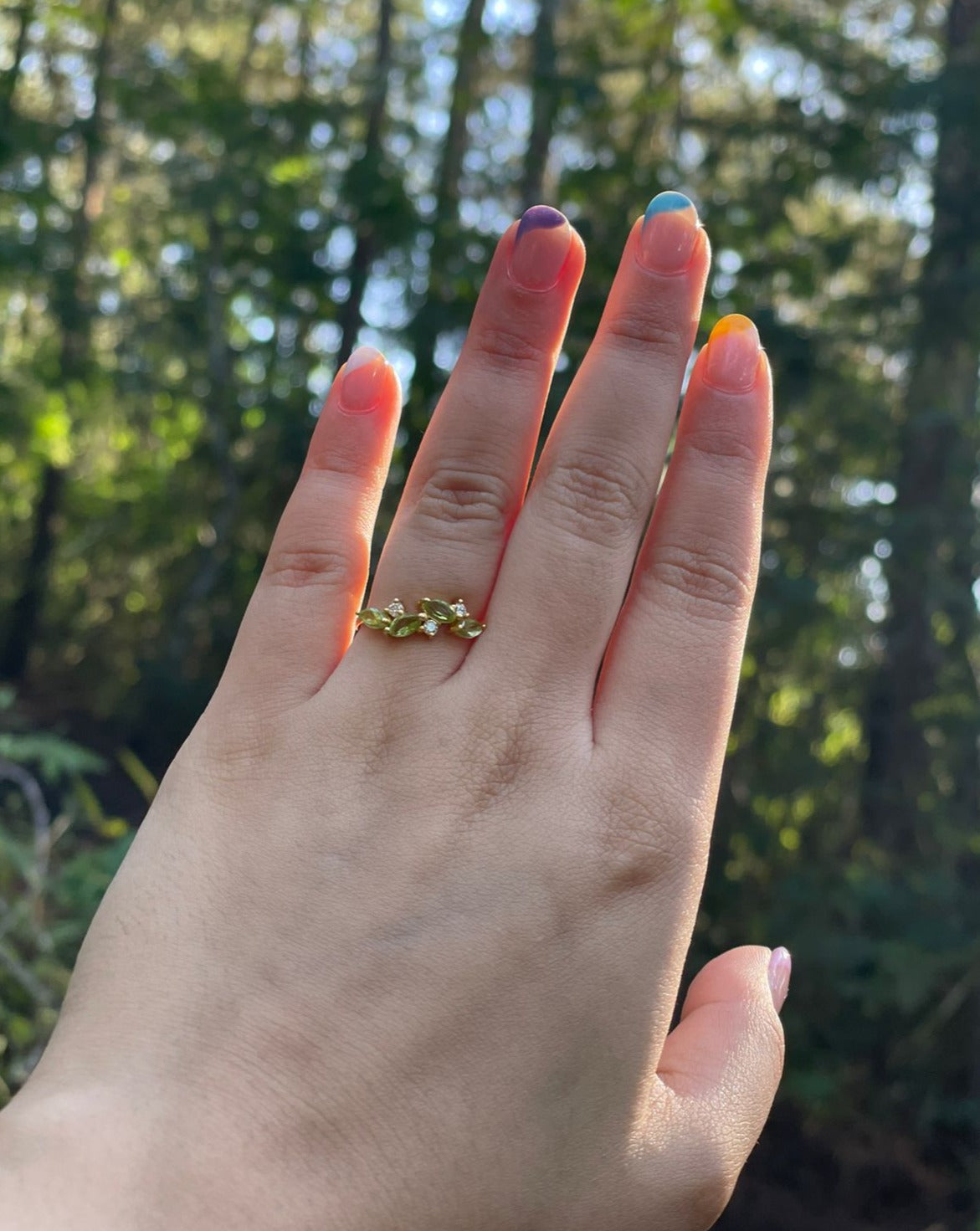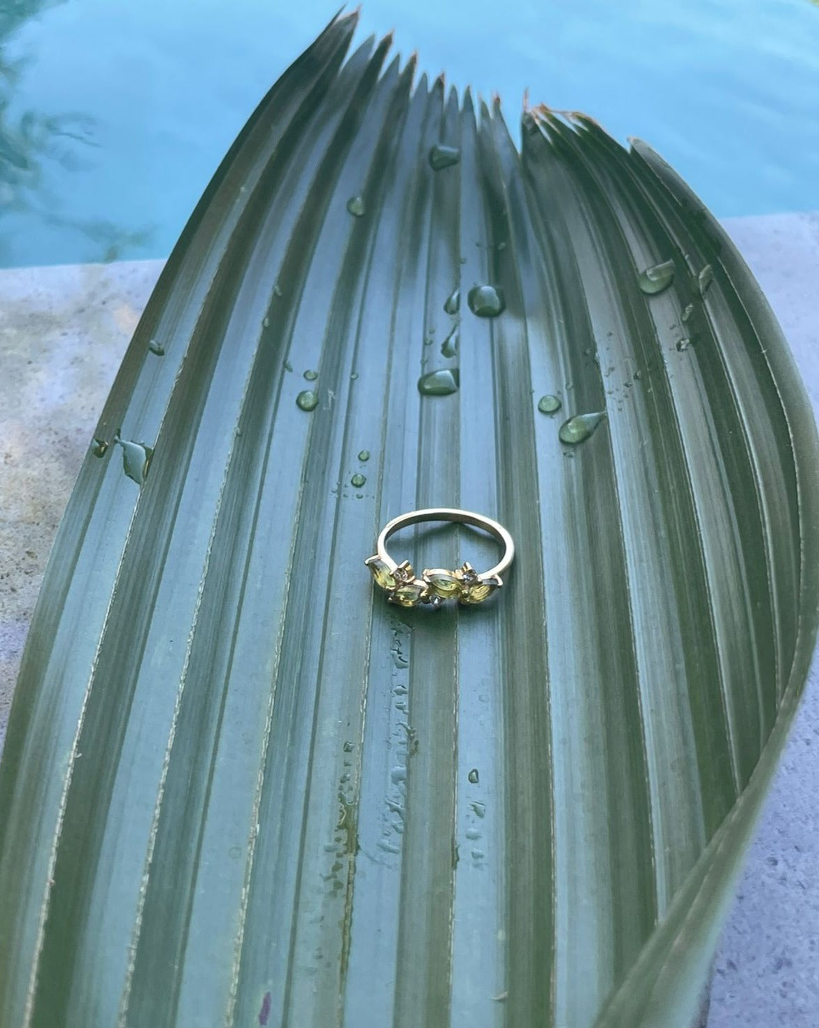 Peridot, a green coloured gemstone is one of the birthstones for August. We’ve made this ring using its green colour to complement as a leaf and have added diamonds to enhance the look. Made in 14 karat solid gold and BIS Hallmarked.