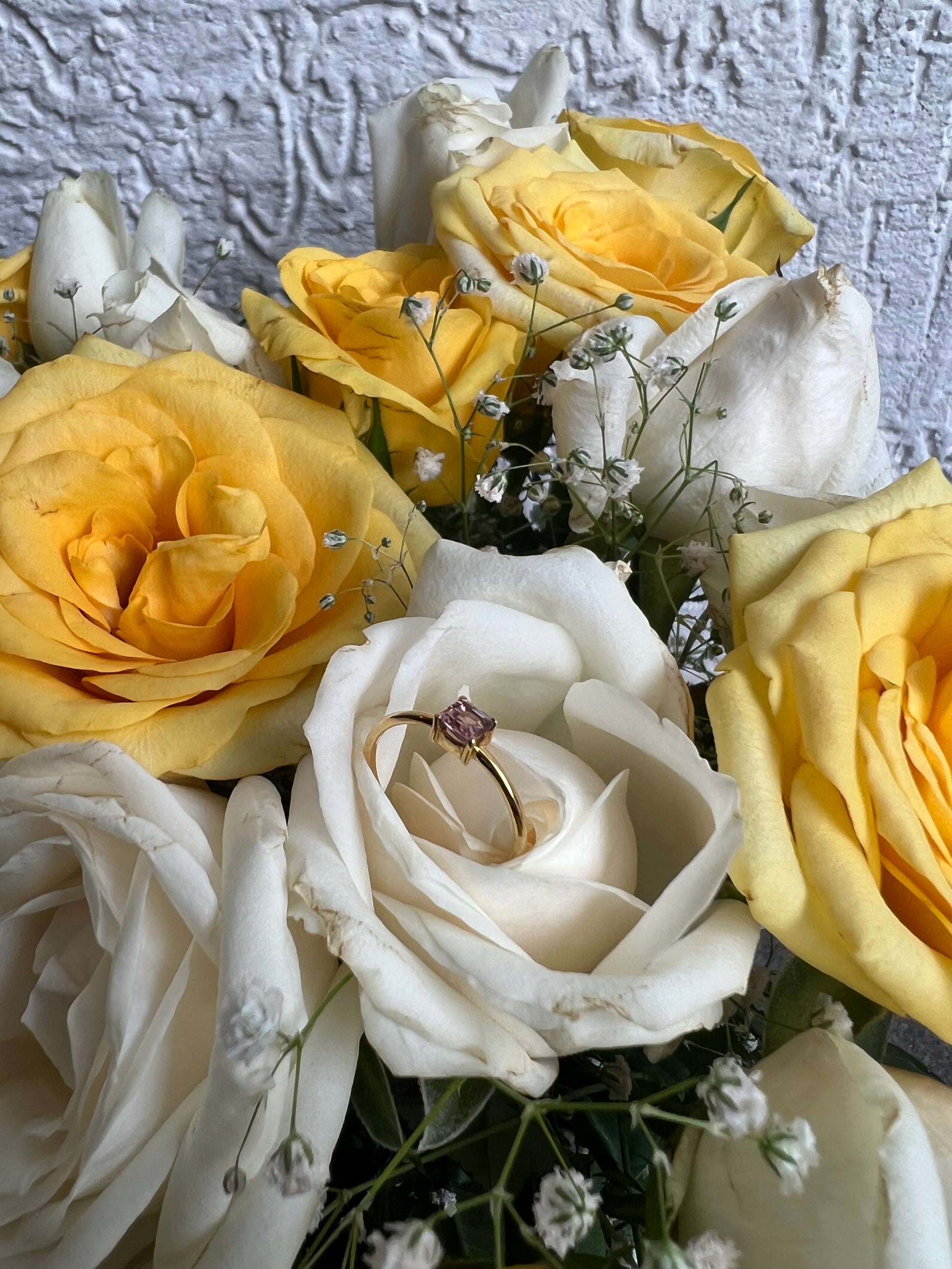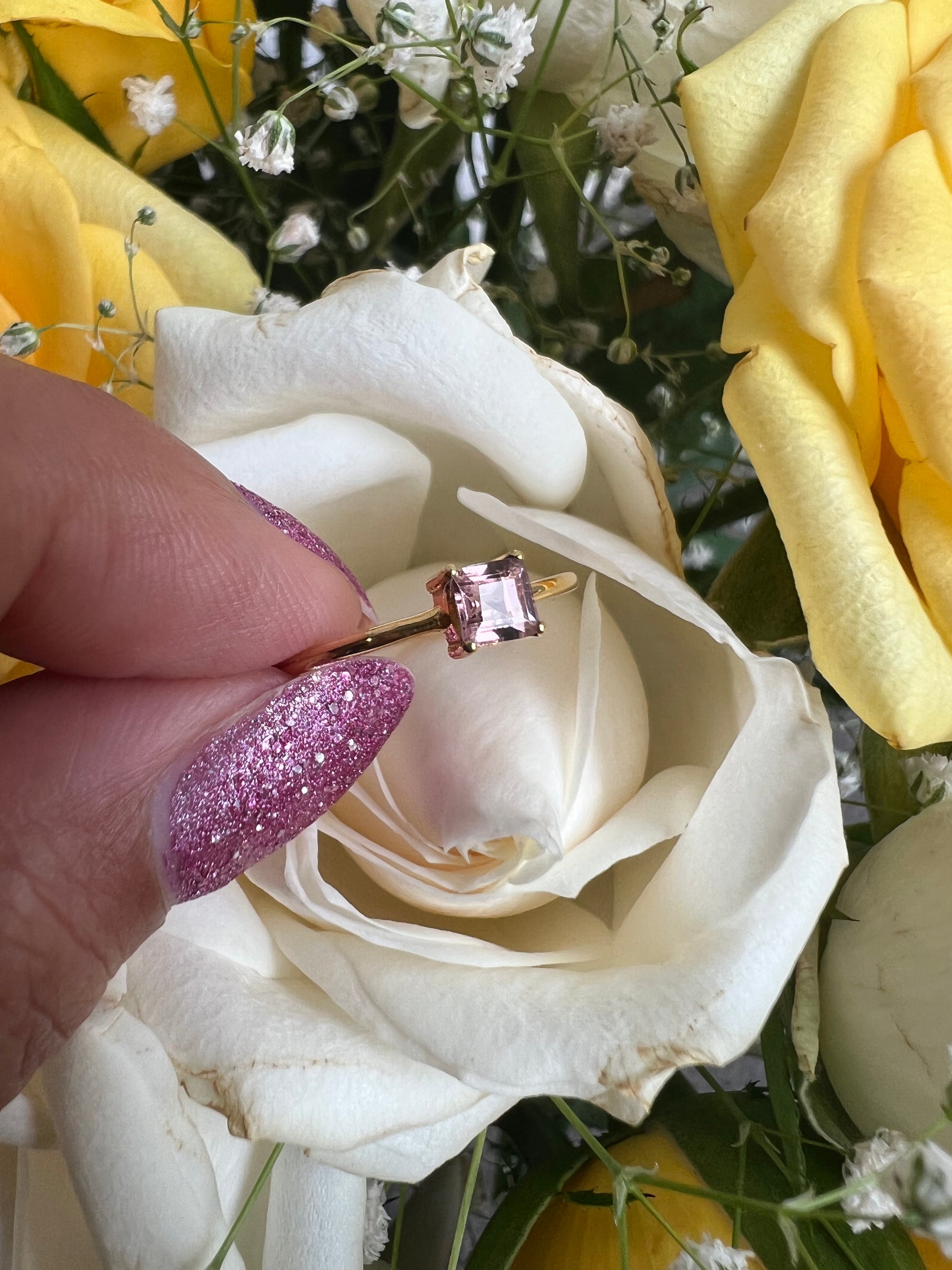 Featuring our Primrose ring with pink tourmaline, made in 14 karat solid gold, BIS hallmarked. This piece is perfect for everyday and goes with absolutely anything you decide to wear.