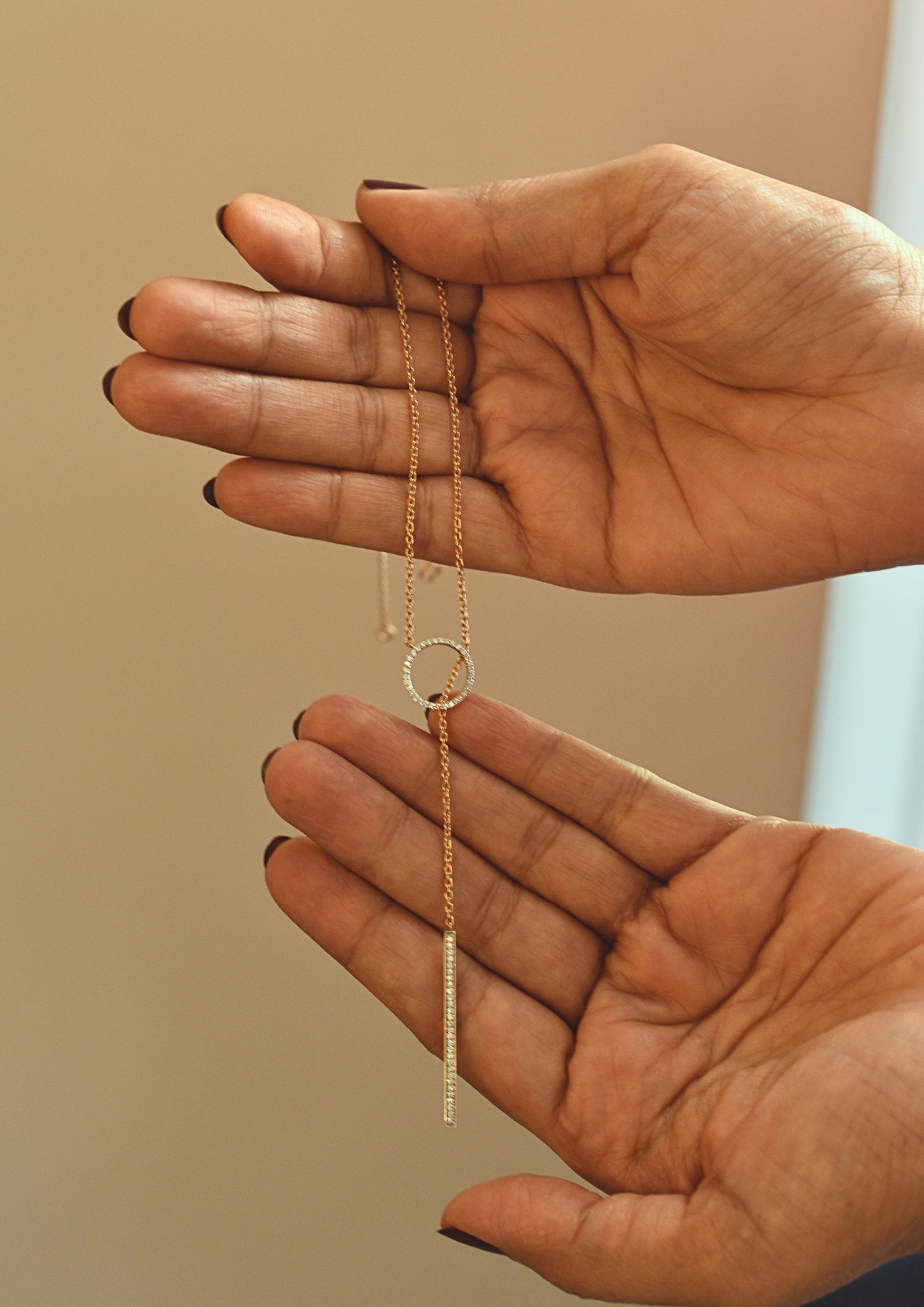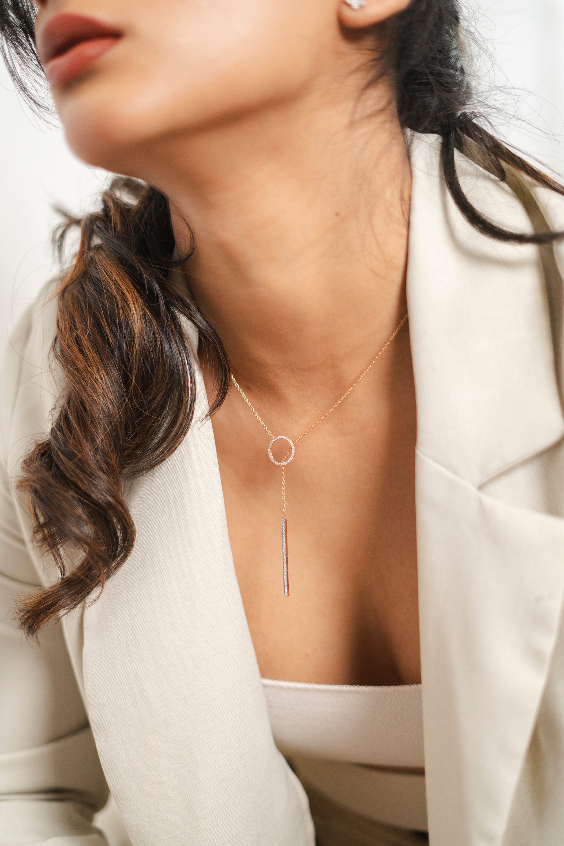 Make a statement with the adjustable Round lariat. Made in 18 karat gold with the best quality natural diamonds.