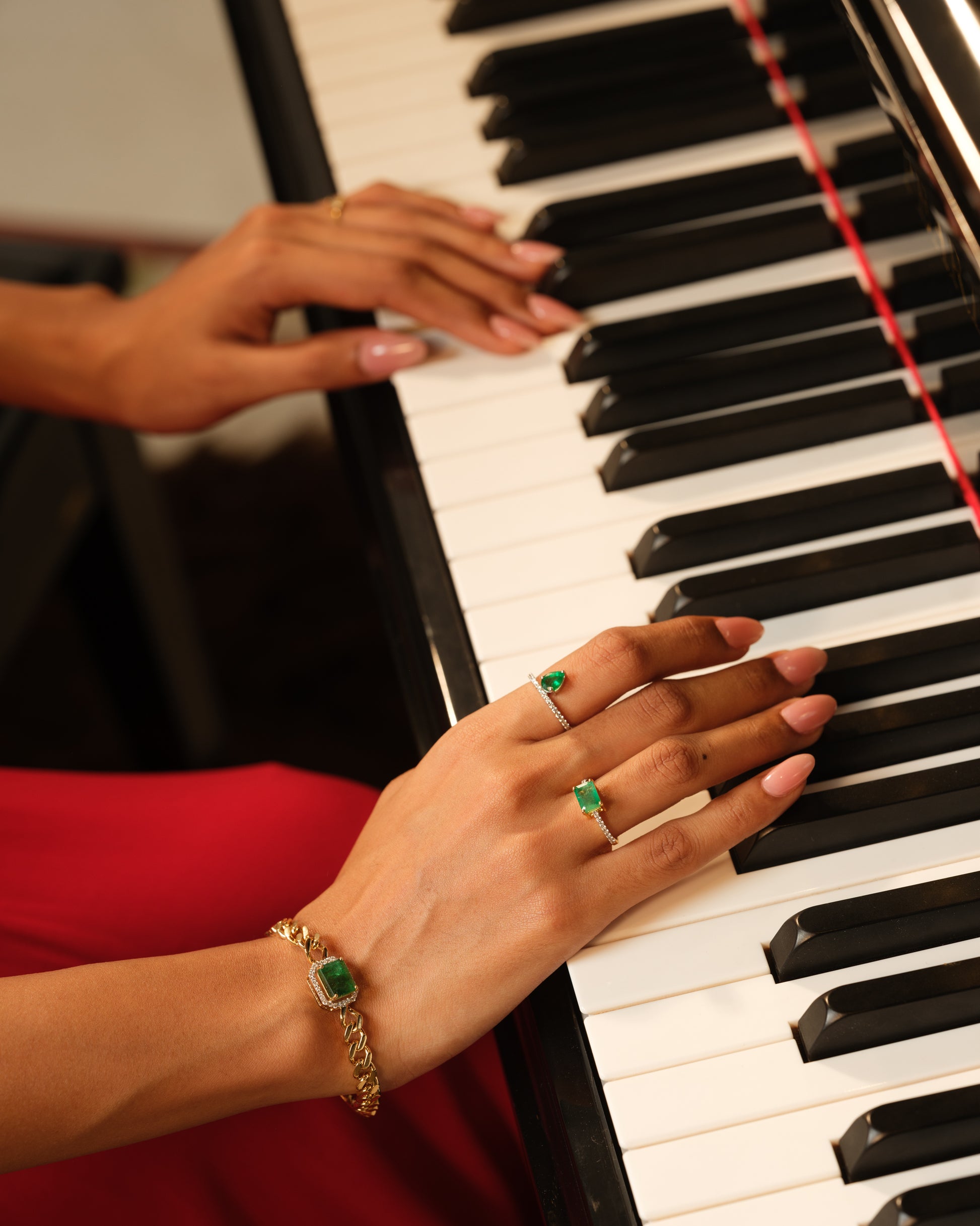 This captivating Emerald ring features a coiled band paved with brilliant diamonds, evoking the elegant form of a serpent. At the centre, a vibrant green Emerald symbolizes vitality and renewal, while the diamond pavé adds depth and radiant sparkle. The design gracefully wraps around the finger, blending modern sophistication with a subtle nod to nature's timeless elegance. A striking and refined piece, this ring captures both the allure and opulence of exquisite craftsmanship.