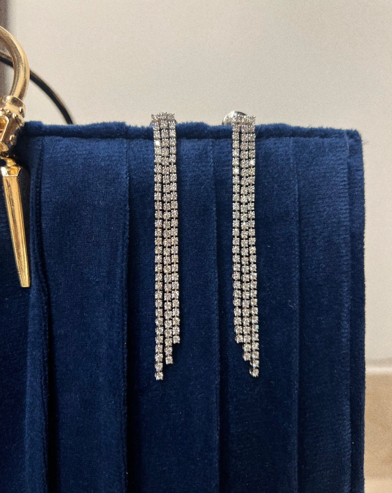 Three line diamond earrings, made with the best quality diamonds (VVS clarity and E-F colour) and 18 karat gold.