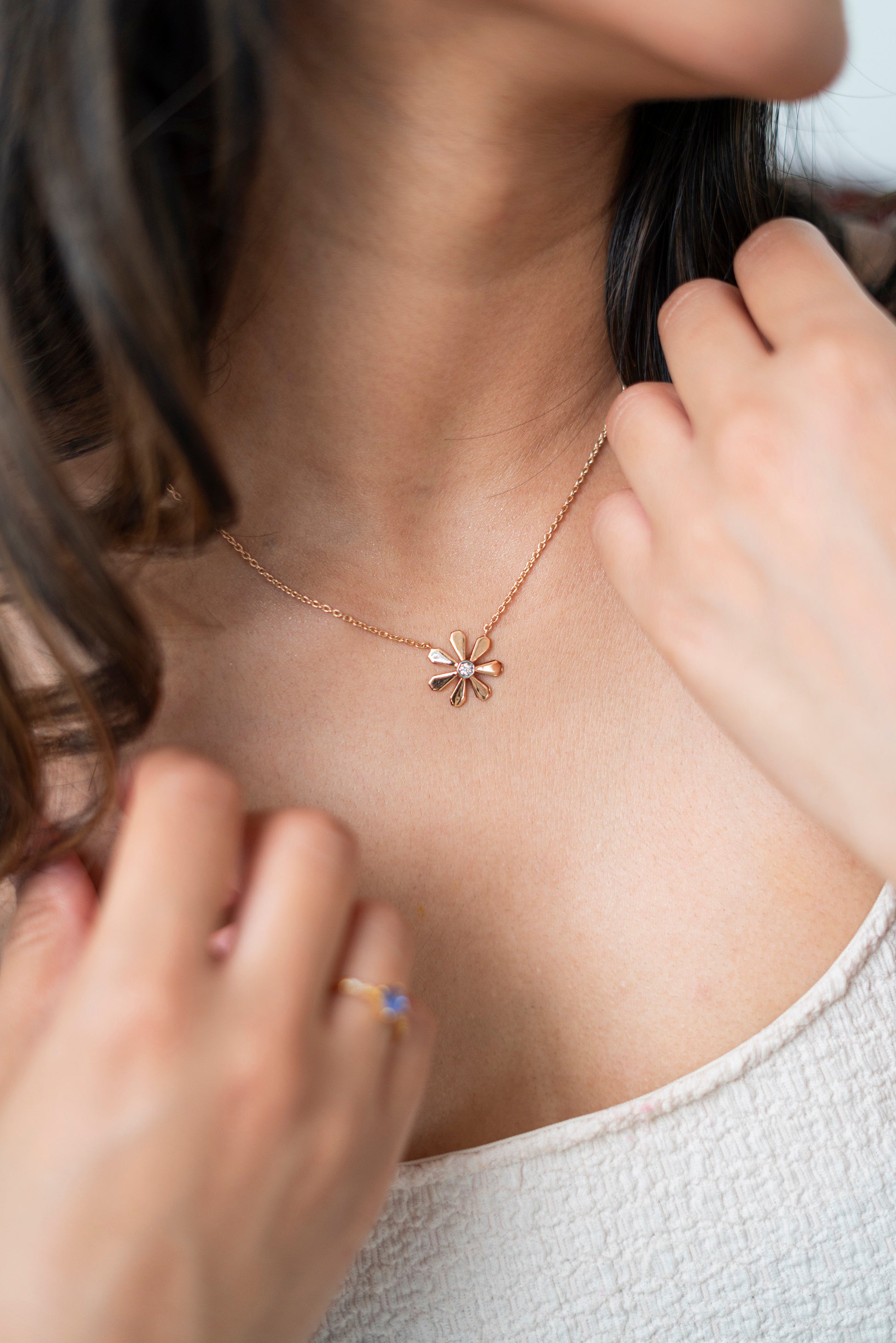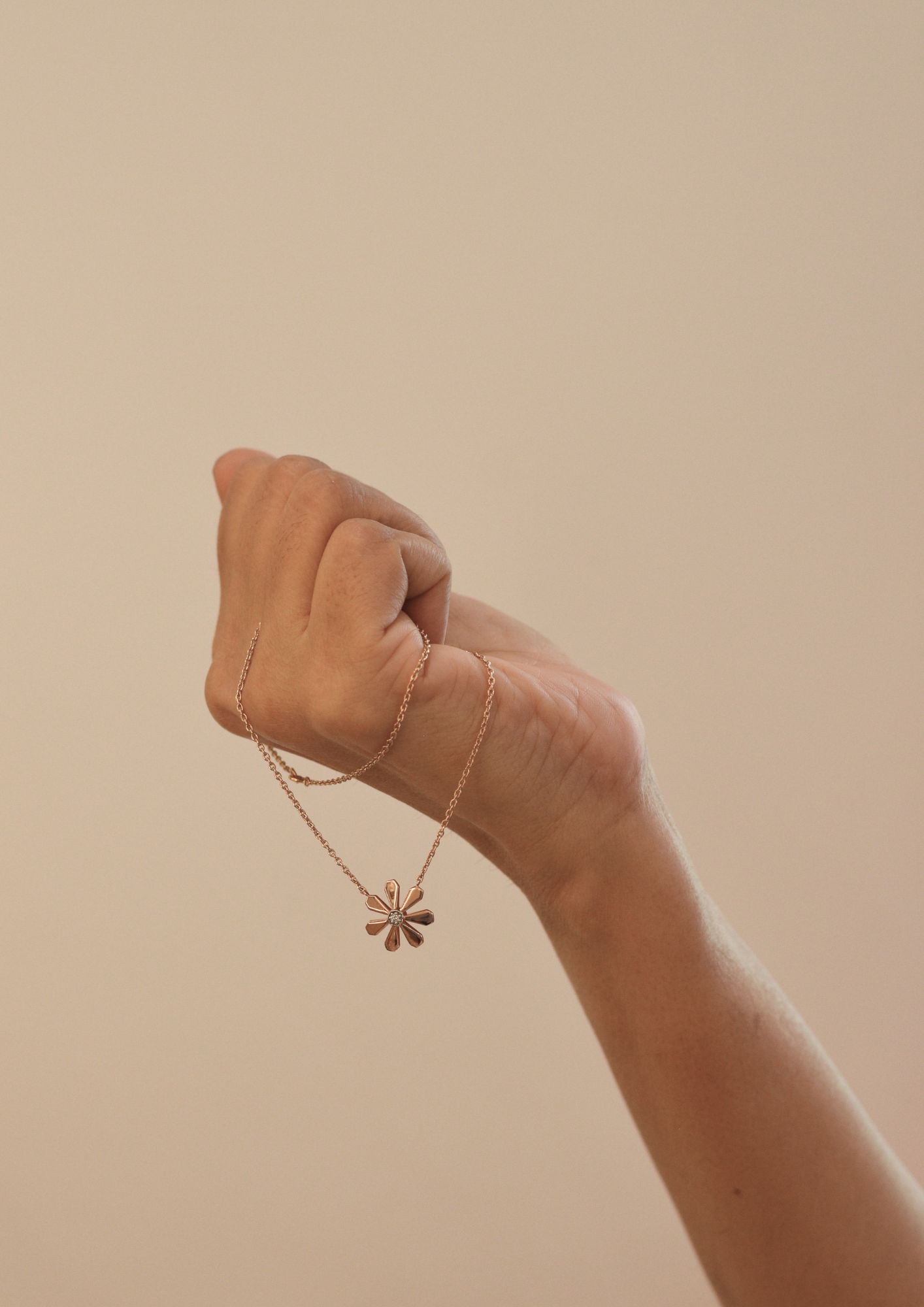 Embodying the spirit of a wildflower, this necklace is a perfect add to your daily adventures. Handmade in 18 karat gold with one natural diamond in the centre.